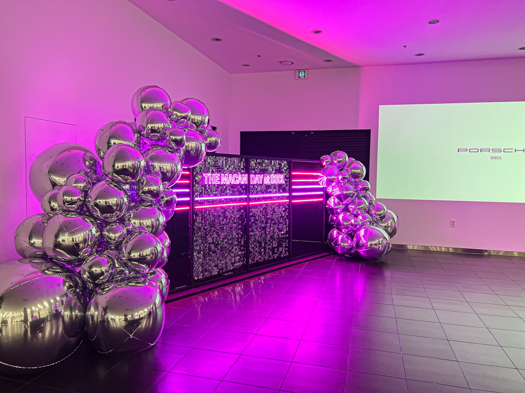 부산 포르쉐 ‘THE MACAN DAY’ 행사 현장을 위해 고급스러운 크롬 실버 벌룬과