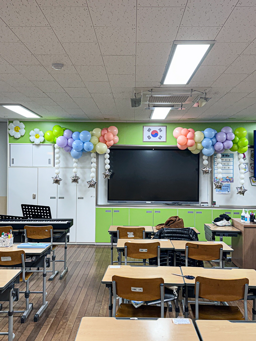 알록달록 풍선으로 완성한 학예회 맞춤 교실 데코레이션.