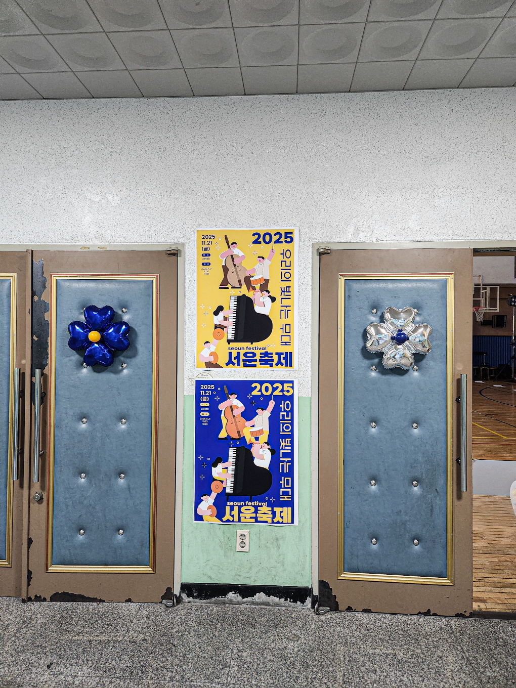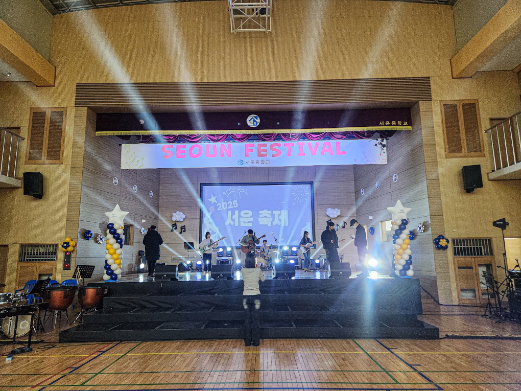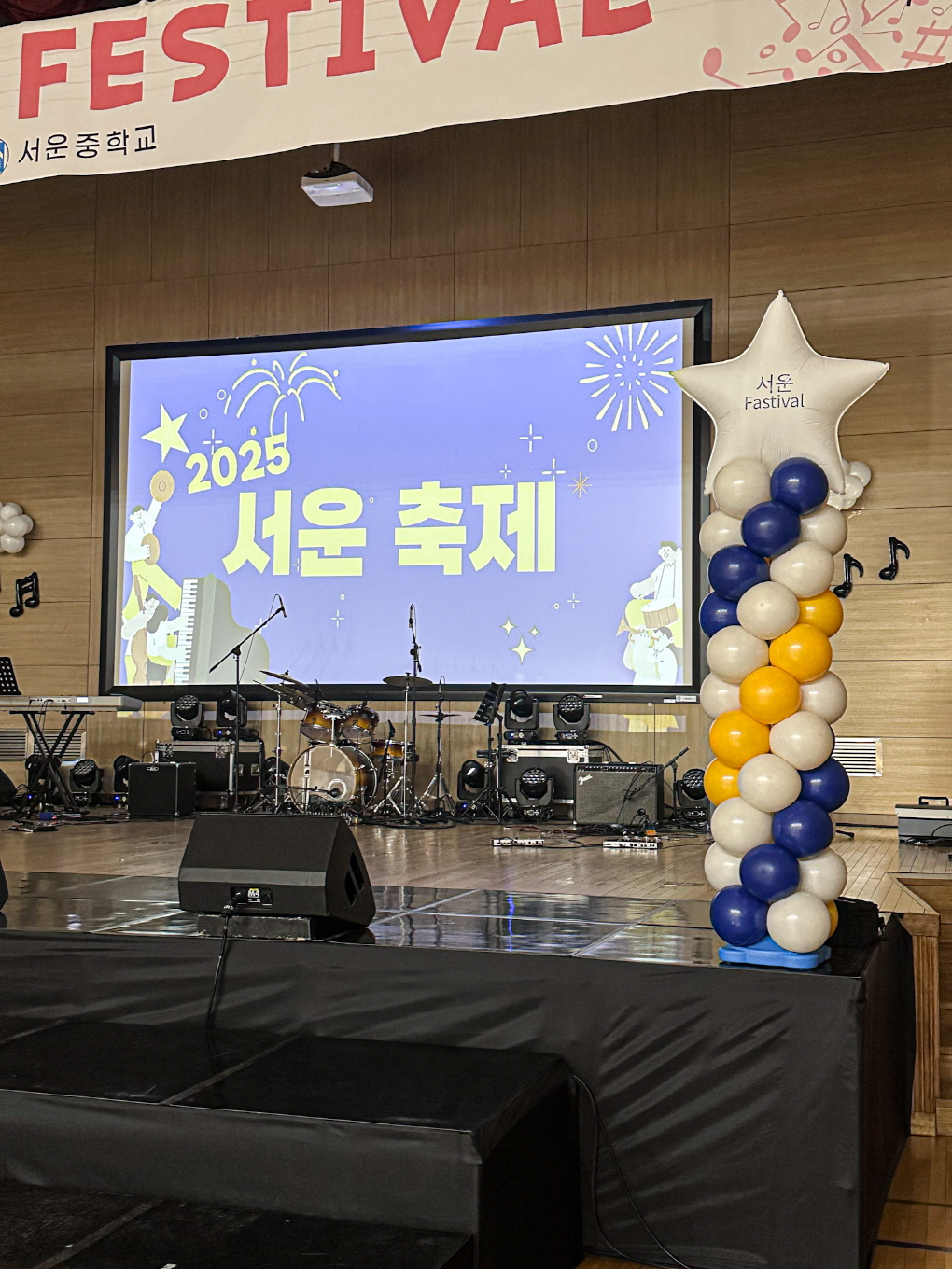 서운중학교 학예회를 위해 학교 컬러에 맞춘 네이비·옐로우·화이트 톤의