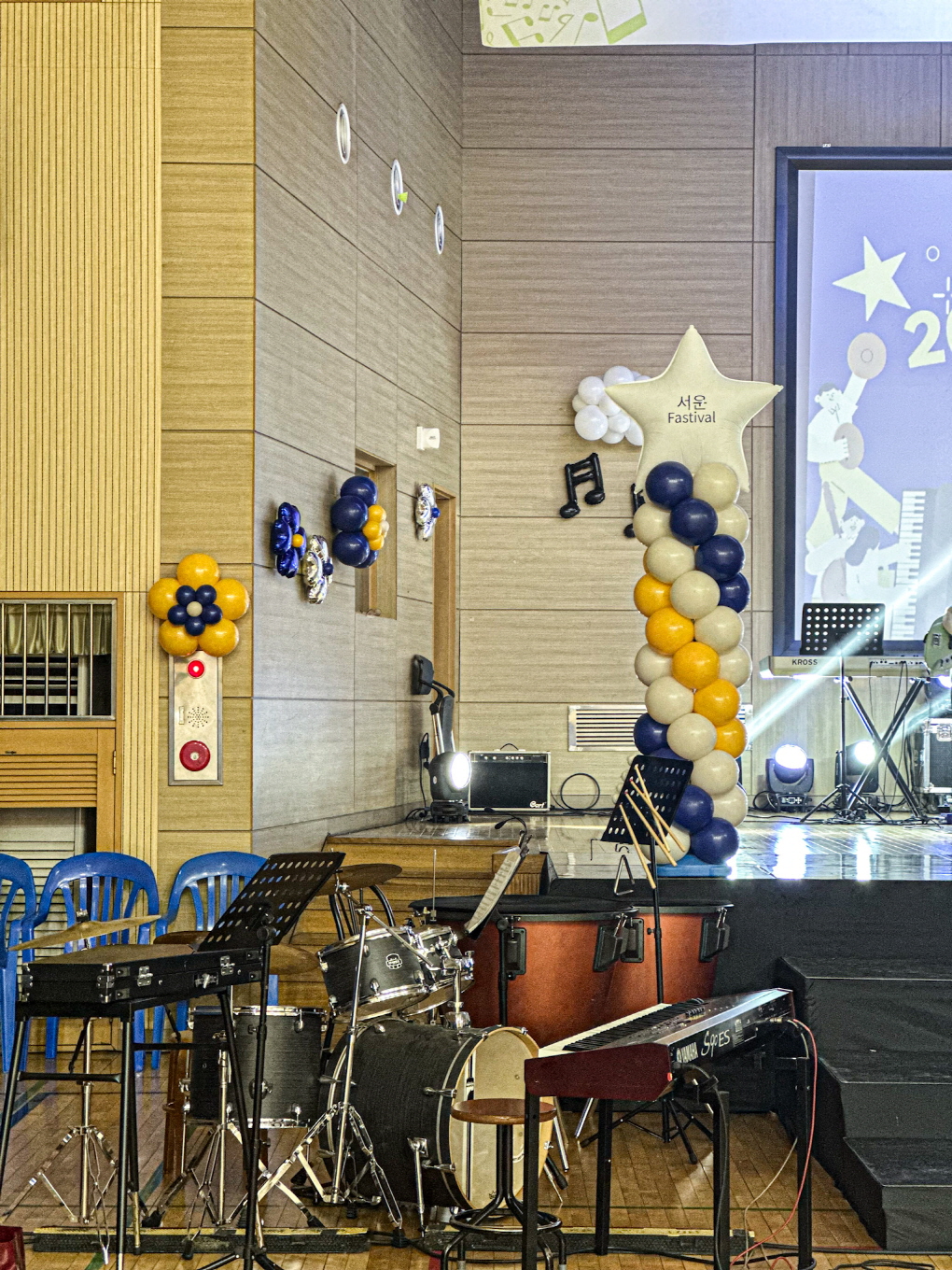 무대 양옆 포인트 장식과 입구 아치까지 통일감 있게 구성해 학생들이