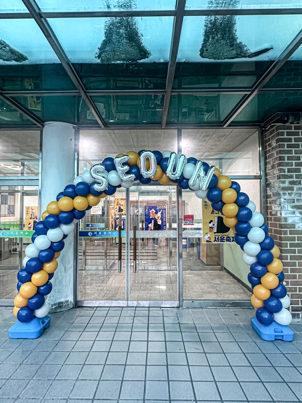 풍선 기둥과 포토존 연출을 더해 밝고 활기찬 분위기를 완성했습니다.